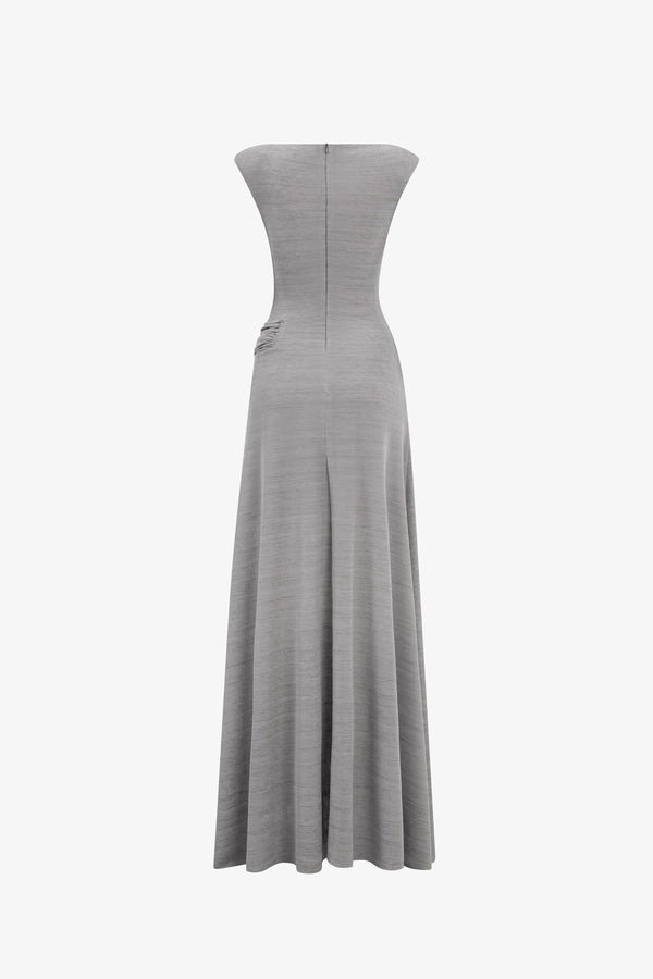 - Draped cap sleeve design