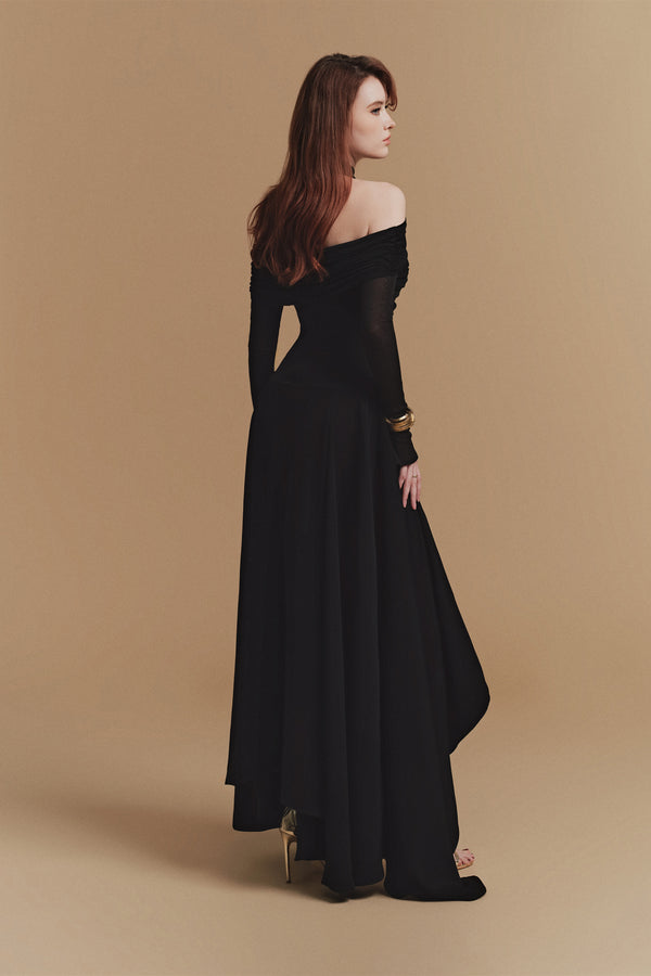 - Asymmetrical high-low skirt